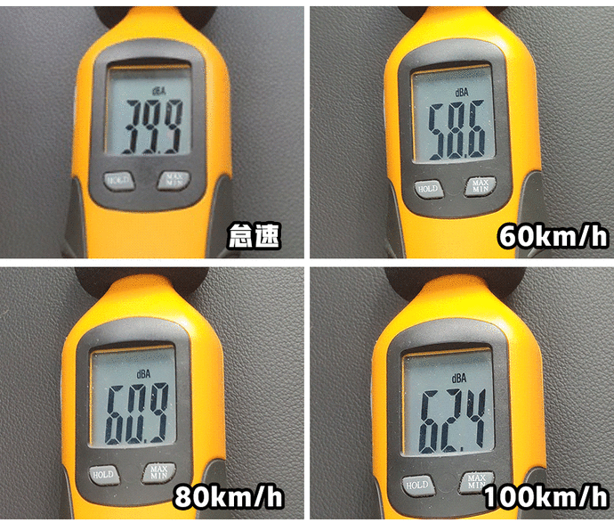 为全面了解不同速度下的噪音情况,砖叔分别进行了怠速、60km/h、80km/h和100km/h车速下的车内噪音测试。测试时间为下午4点左右,地点在首都机场第二高速,车流量正常。